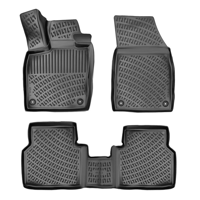Sunt create dupa forma si dimensiunea podelei fiecarui autoturism. Bordura cu inaltimea de 3 cm a covoraselor retine apa, zapada, praful si alte impuritati. Datorita compozitiei chimice a materialului, covorasele nu degaja miros neplacut in interiorul autoturismului. Isi pastreaza vreme indelungata proprietatile initiale si pot fi curatate cu usurinta cu detergenti. Sunt impermeabile si rezistente la temperaturi inalte si joase. Sunt prevazute cu sistem anti-alunecare si sistem de fixare in podea. Covorasul din partea conducatorului auto are o extindere speciala, care acopera complet zona de odihna a piciorului stang. Covorasele din spate sunt legate intre ele printr-o parte ce acopera tunelul de mijloc. Sunt create din material de inalta calitate, rezistent, durabil si reciclabil -TPE.