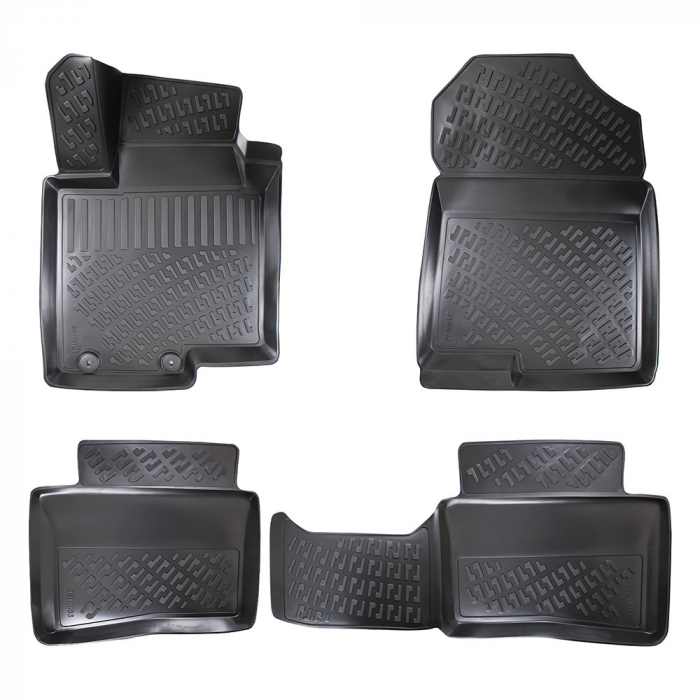 Sunt create dupa forma si dimensiunea podelei fiecarui autoturism. Bordura cu inaltimea de 3 cm a covoraselor retine apa, zapada, praful si alte impuritati. Datorita compozitiei chimice a materialului, covorasele nu degaja miros neplacut in interiorul autoturismului. Isi pastreaza vreme indelungata proprietatile initiale si pot fi curatate cu usurinta cu detergenti. Sunt impermeabile si rezistente la temperaturi inalte si joase. Sunt prevazute cu sistem anti-alunecare si sistem de fixare in podea. Covorasul din partea conducatorului auto are o extindere speciala, care acopera complet zona de odihna a piciorului stang. Covorasele din spate sunt legate intre ele printr-o parte ce acopera tunelul de mijloc. Sunt create din material de inalta calitate, rezistent, durabil si reciclabil -TPE.