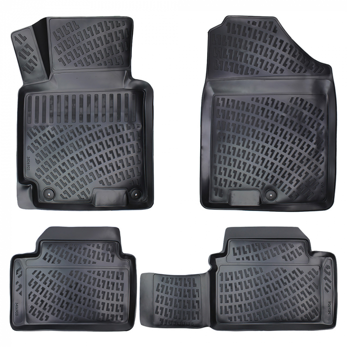 Sunt create dupa forma si dimensiunea podelei fiecarui autoturism. Bordura cu inaltimea de 3 cm a covoraselor retine apa, zapada, praful si alte impuritati. Datorita compozitiei chimice a materialului, covorasele nu degaja miros neplacut in interiorul autoturismului. Isi pastreaza vreme indelungata proprietatile initiale si pot fi curatate cu usurinta cu detergenti. Sunt impermeabile si rezistente la temperaturi inalte si joase. Sunt prevazute cu sistem anti-alunecare si sistem de fixare in podea. Covorasul din partea conducatorului auto are o extindere speciala, care acopera complet zona de odihna a piciorului stang. Covorasele din spate sunt legate intre ele printr-o parte ce acopera tunelul de mijloc. Sunt create din material de inalta calitate, rezistent, durabil si reciclabil -TPE.