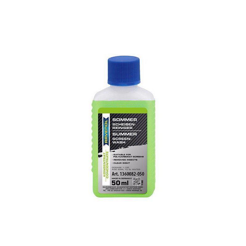 RAVENOL Summer Screen Wash 1:100 se amestecă cu apă curată într-un raport de până la 1:100, în funcție de gradul de murdărire și diluare, apoi se adaugă la sistemul de spălare a parbrizului.